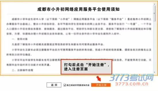 认真阅读使用须知,在“我已阅读并同意须知内容”处打勾,点击“开始注册”,进入注册页面。