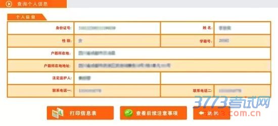 个人基础信息表中显示已提交的个人基础信息。若还须修改,点击“返回”;若要打印个人信息,点击“打印信息表”;若个人信息无误,请点击“查看后续注意事项”。