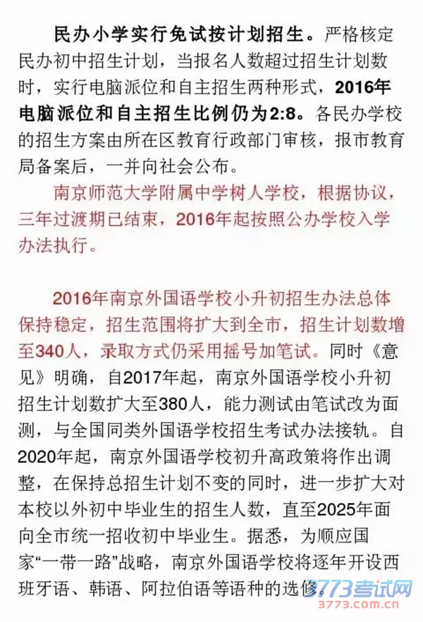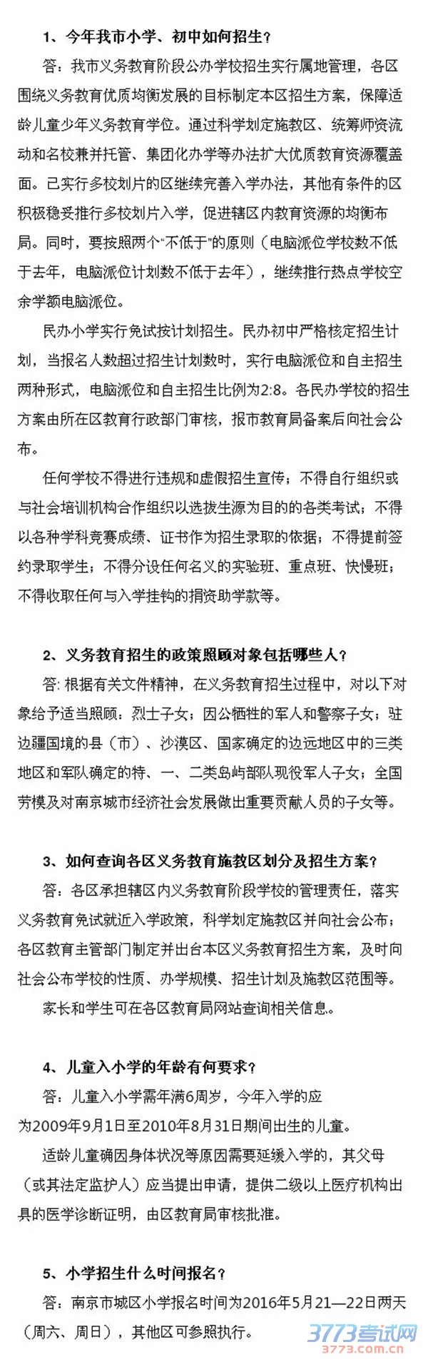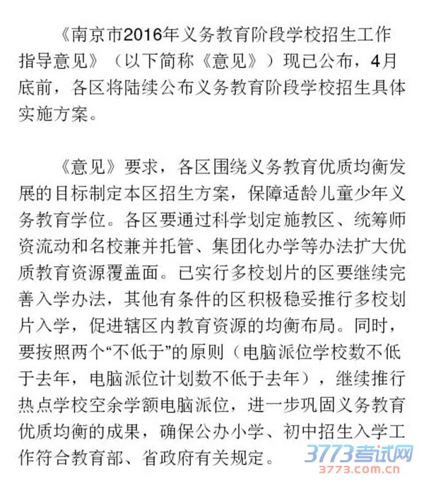 《南京市2016年义务教育阶段学校招生工作指导意见》(以下简称《意见》)正式公布。据悉,南京各市各区将陆续根据《意见》出台具体实施方案,将第一时间发布,请大家密切关注。