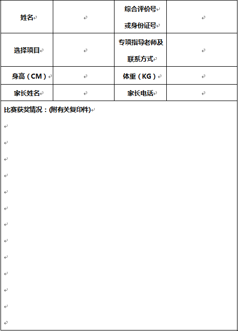 附表1:2016年师大一中“小升初”体育特长生报名表