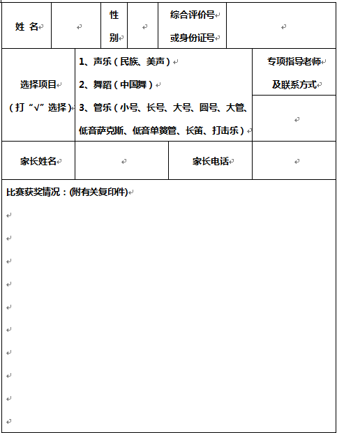 附表2:2016年师大一中“小升初”艺术特长生报名表