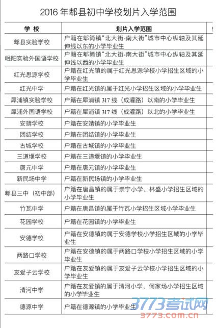 近日,成都市各区(市)县教育行政部门的片区划定已及时公布。日前,郫县教育局在其官方公布了2016年郫县初中学校划片入学范围。