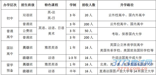 说明:招生计划名额以《昆明招生信息》计划版公布为准。留学预备班详情请直接到学校索取相应资料。