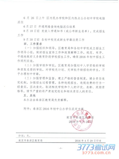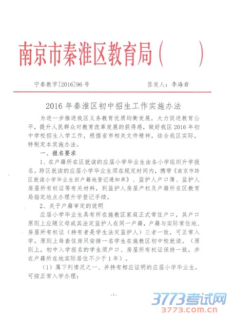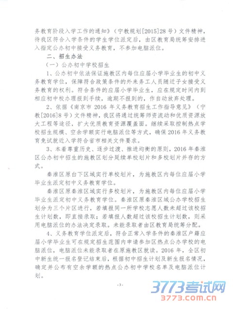 南京市秦淮区教育局2016年秦淮区小学新生入