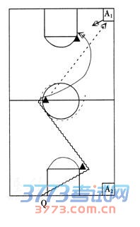 ② 不能带球跑和两次运球,否则被判违例。如违例,裁判员立即鸣哨并给口语明确指出违例地点,并让考生在就近边线外重新运球入场继续测试,计时表不停。