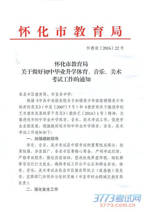 怀化市教育局关于做好初中毕业升学体育、音乐、美术考试工作的通知