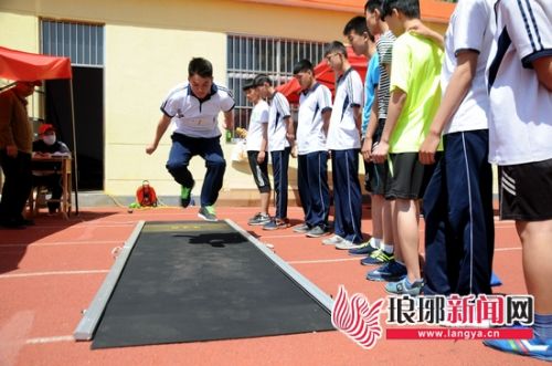 在现场观察了10多分钟,记者发现不少男生的成绩都在2.2米—2.3米之间,跳到满分2.5米的考生较少。“我跳了2.3米多一点,比平时的成绩少了5公分。”临沂五中九年级1班的考生刘志国说,与跳沙坑相比,在平地上跳远的难度更大,而同班里跳出满分的同学也没几个。