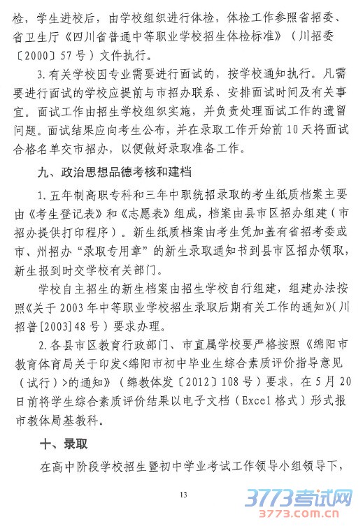 2016绵阳中考五年专志愿填报时间6月23日至2