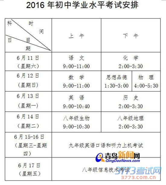 2014级学生考试科目为地理、生物、信息技术,由市教育局统一组织实施。