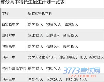 从今年开始,济南各普通高中招收特长生不再仅针对“艺术、体育”特长,而是招全学科特长生。具体招生方案由各学校根据自身办学特色制定,每个学校最多招收3科。这对高中学校来说,不仅扩大了招生的自主权,而且与往年相比,各高中招收特长生的方案不再“齐步走”,每个学校的方案科目均不同。