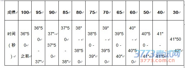 考试方法:受试者站在起跑线上,听到口令启动(教师同时开表),沿直线跑至5米处,触及标志物返回跑至起跑线,再触及标志物返回跑至10米处,触及标志物后返回起跑线。依此类推及25米处,当受试者第五次返回时,考试结束(考试停表)。