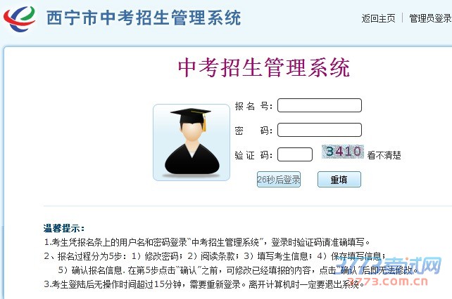西宁中考招生管理系统http://125.72.41.158:8231/xnzk是2016西宁中考官方网站,提供2016西宁中考报名、西宁中考志愿填报、2016西宁中考成绩查询、西宁中考查分、2016西宁中考录取分数线结果查询等系统