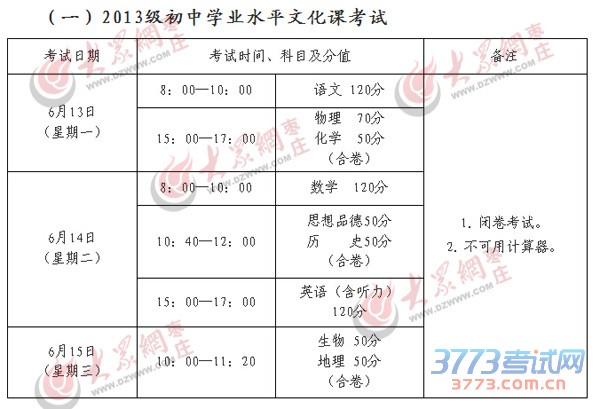 初中学业水平考试既是九年义务教育的终结性考试,也是高中阶段学校录取新生的主要依据。应届学生可自愿选择参加地理、生物的两次文化课考试,取最高成绩纳入录取。2013级的初中学业水平地理生物二次考试的考试时间、命题等均与2014级相同,往届生、外地市回原籍的,须参加2016年所有科目的考试。