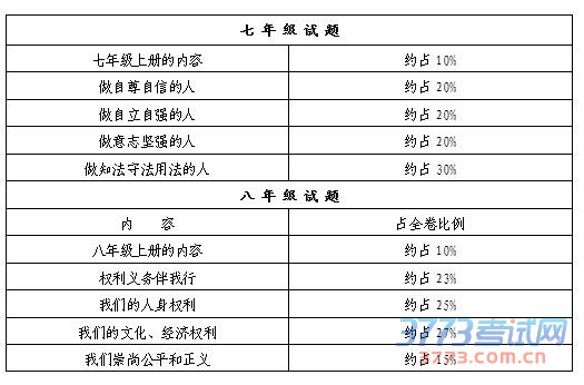 以教育部颁发的《义务教育思想品德课程标准(2011)版》、七至八年级《思想品德·人教版》、《昭通市初中思想品德学科教学指导意见考试说明》(2016年修订稿)所规定的教学内容和基本要求为命题依据。以七、八年级思想品德教材为主要内容。