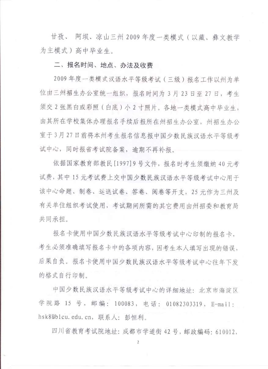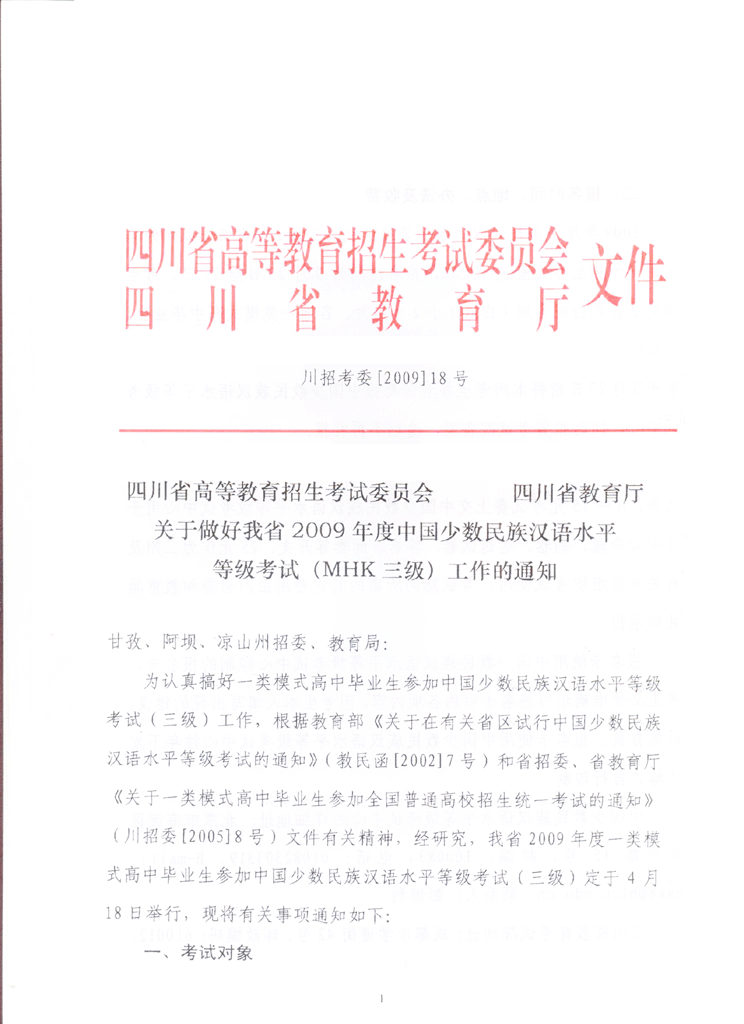 四川省2009年度中国少数民族汉语水平等级考试(MHK三级)工作的通知