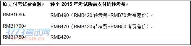 从2014年转考至2015年考试的雅思考生,需补交考费差额,转考手续费维持不变。