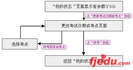 转考:当你成功完成IELTS考试报名程序之后,在报名截止日期之前,你仍然可以在网上变更你的考试日期和/或考点,这需要你额外支付500元人民币。当你选择考位时,你会看到每场考试的报名、转考和退考的截止日期。请以该网页公布的截止日期为准。
