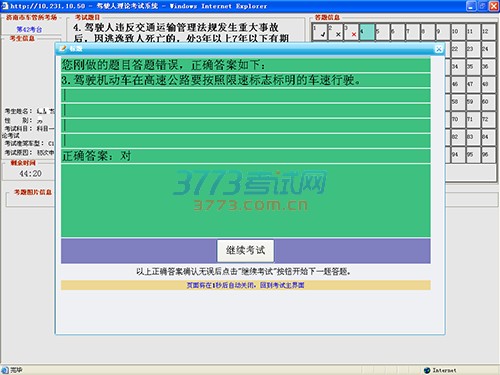 6、依序答题,注意把握考试时间(科目一考试时间总共为45分钟)