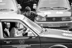 一名学员正在驾校教练的指导下练习驾驶技术。信息时报记者 何剑辉 摄