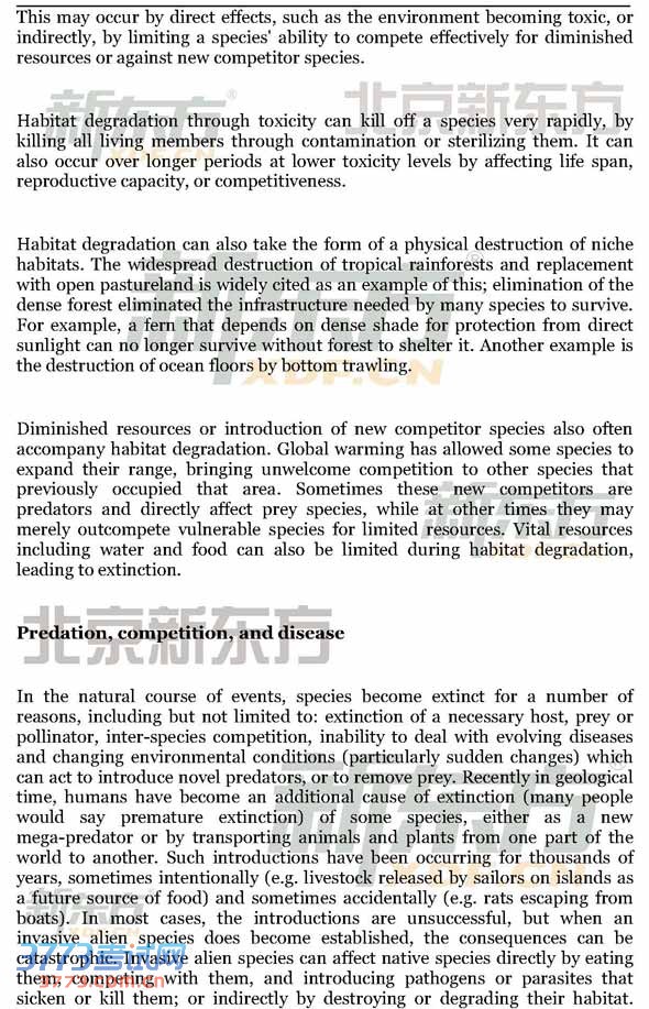 第一篇文章讲解了动物的灭绝的原因。相似的话题可以参考tpo中文章mass extiction,文章的理解重点是要把握好解释灭绝的原因,以及相对应所举的例子。