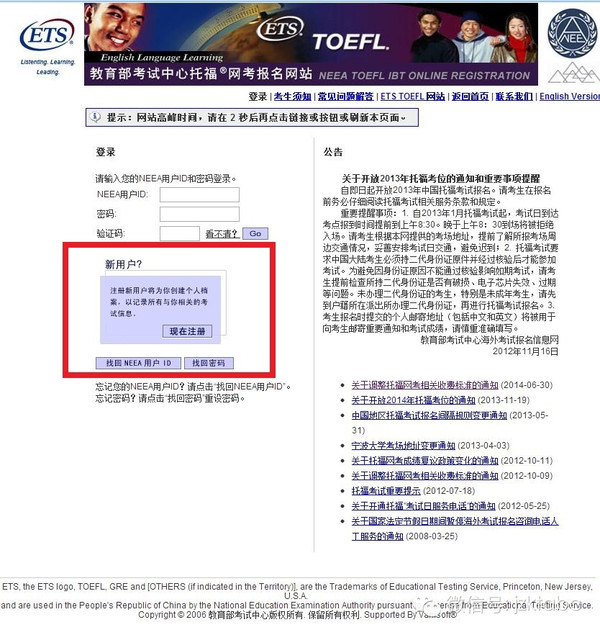托福官网报名第一步:注册。已经在官网上完成此步的同学,请跳过这一步。