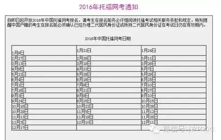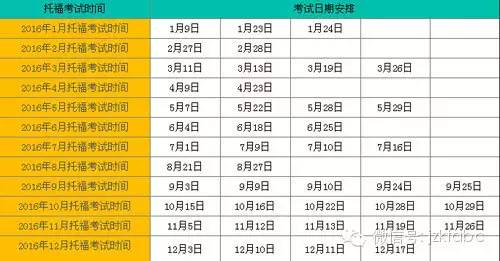 2016年托福考试时间表(全年)