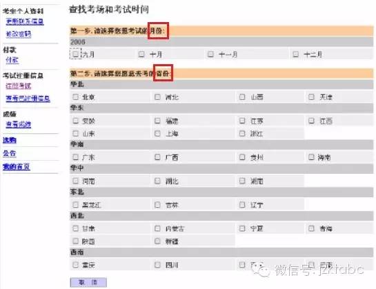 在托福官网指定的考试的时间和省份作选择