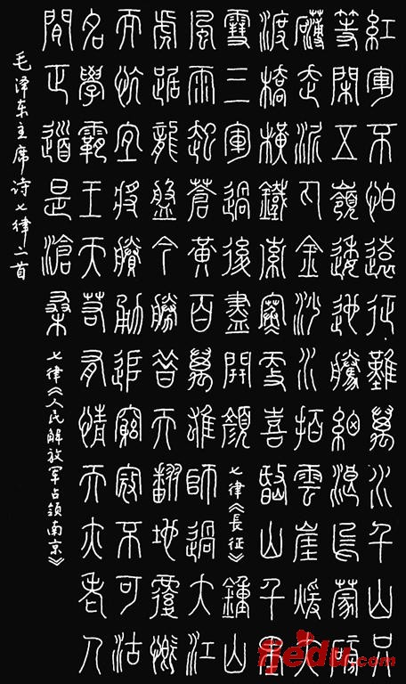 八级创作(8-3):行笔稳定,结构较严谨,篆法正确。通篇和谐富有变化。基本达到了八级篆书创作的标准要求。有些字结构欠妥,如“横”“寒”“翻”等字不够舒展。