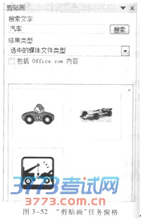 (2)单击“插入”功能区“插图”组中的“剪贴画”按钮,打开图3—52所示的“剪贴画”任务窗格。