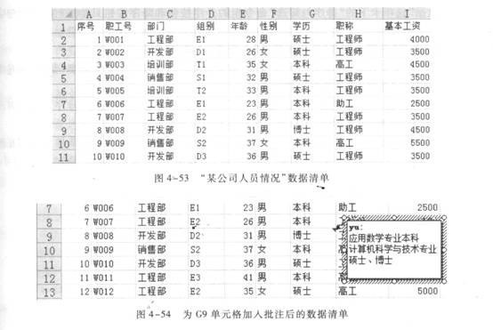 建立数据清单后,可为某些单元格内的数据添加批注,也可随时删除批注。