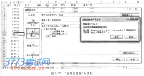 入信息,当鼠标指针放置在建立的超链接位置时,显示相应的提示信息,如“打开人力资源情况表(2)”,单击“确定”按钮即完成,如图4—76所示。