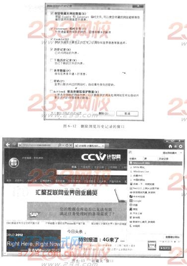 6.收藏夹的使用 在网上浏览时,人们总希望将喜爱的网页地址保存起来以备使用。IE提供的收藏夹提供保存Web页面地址的功能。收藏夹有两个明显的优点,其一,收入收藏夹的网页地址可由浏览者给定一个简明的、便于记忆的名字,当鼠标指针指向此名字时,会同时显示对应的Web页地址。单击该名字就可以转到相应的Web页,省去了在地址栏键入地址的操作。其二,收藏夹的机理很像资源管理器,管理、操作都很方便。掌握收藏夹的操作对提高浏览网页的效率是很有益的。 下面介绍如何将网页地址添加到收藏夹和整理收藏夹的具体步骤。 1)将Web页地址添加到收藏夹中 往收藏夹里添加Web页地址的方法很多,而且都很方便。常用的方法是: (1)使用“添加到收藏夹”按钮 将当前打开的网页存放到收藏夹中的操作如下: ①打开要收藏的网页(本例中为“计算机世界”的主页); ②单击IE上的 按钮,在打开的窗口中选中“收藏夹”选项卡,如图6—13所示;