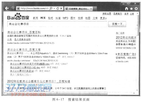 ②单击文本框后面的“百度一下”按钮,开始搜索。最后,得到搜索结果页面如图6—17所示。