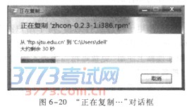④IE会弹出一个“正在复制…”对话框,如图6—20所示,在这个对话框中,可以看到复制的文件名称、复制到的文件夹以及下载进度条和估算的剩余时间。