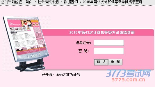 2015年第43次计算机等级考试成绩查询 准考证号: 密 码: 已开通,密码为准考证号