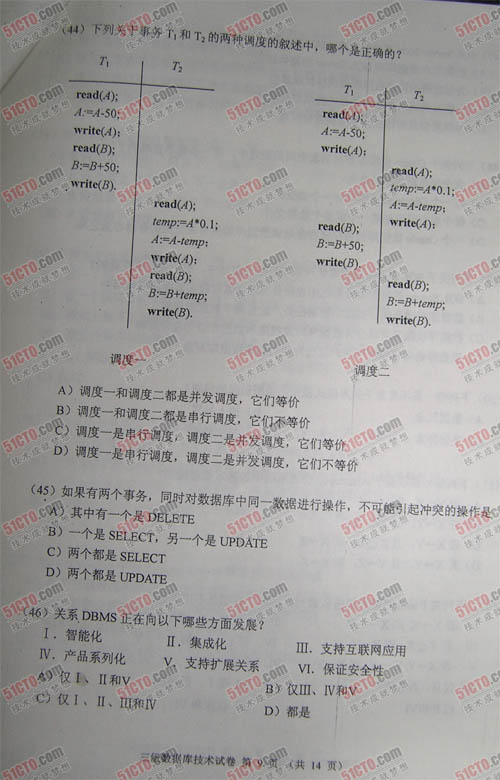 2009年3月计算机等级考试试题及答案三级数据库笔试