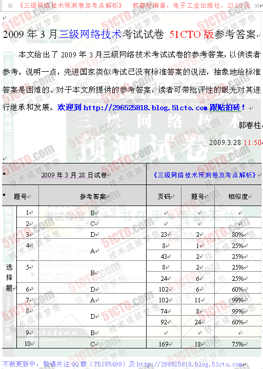 2009年3月计算机等级考试试题及答案三级数据库笔试