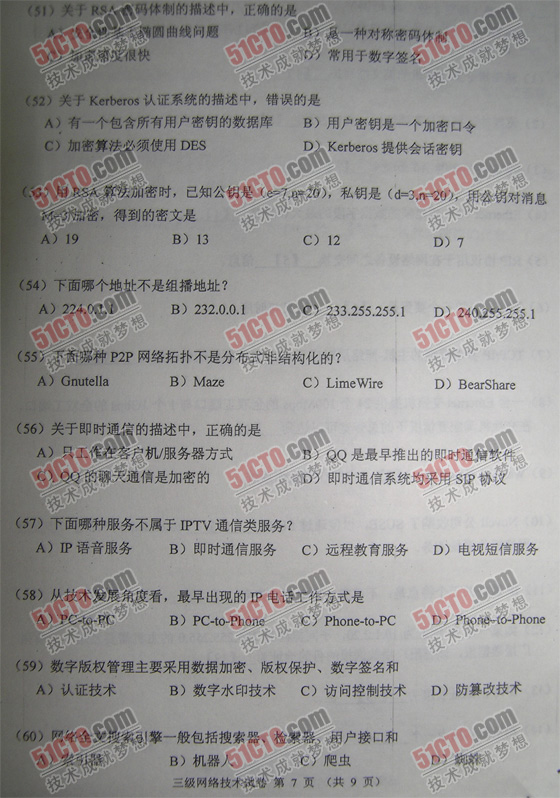 2009年3月计算机等级考试三级试题-网络技术笔试