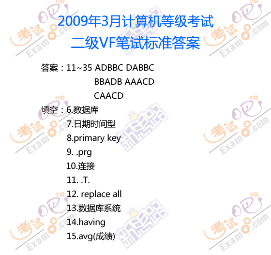 2009年上半年计算机等级考试二级试题答案VF笔试