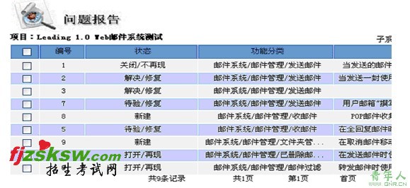 (2)下图是该测试项目的某软件问题报告视图。按QESuite Web Version 1.0中的软件问题生命周期定义,4号软件问题报告需要何种人员进行哪些可能的操作?5号软件问题报告需要何种人员进行哪些可能的操作?8号软件问题报告需要何种人员进行哪些可能的操作?(9分)