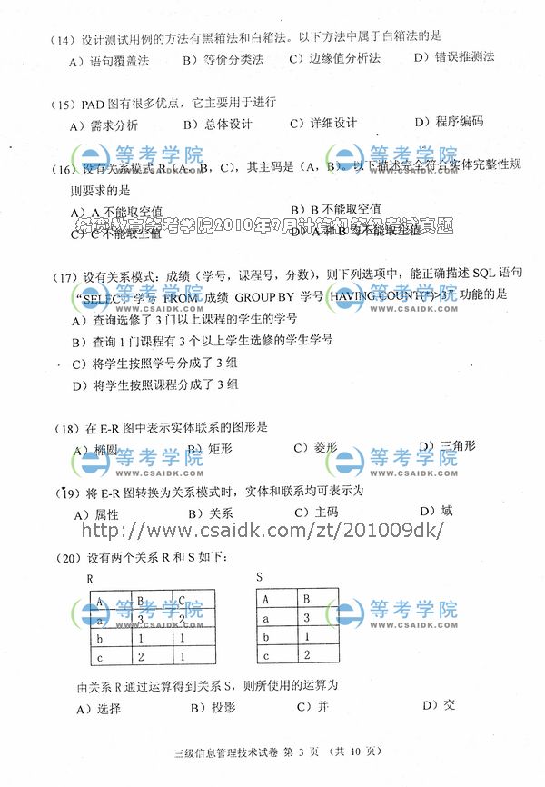 2010年9月计算机等级考试三级笔试试卷_信息管理技术