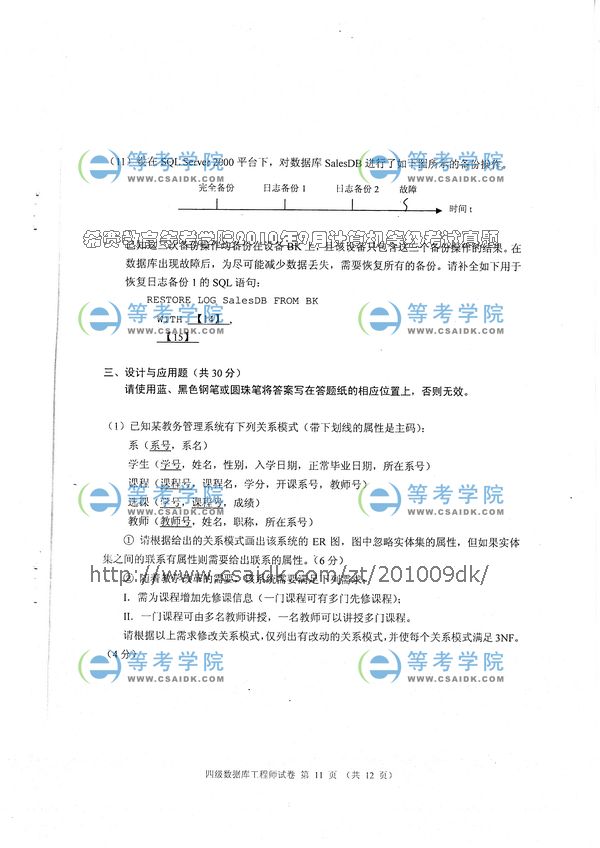 2010年9月计算机等级考试四级笔试试卷_数据库工程师