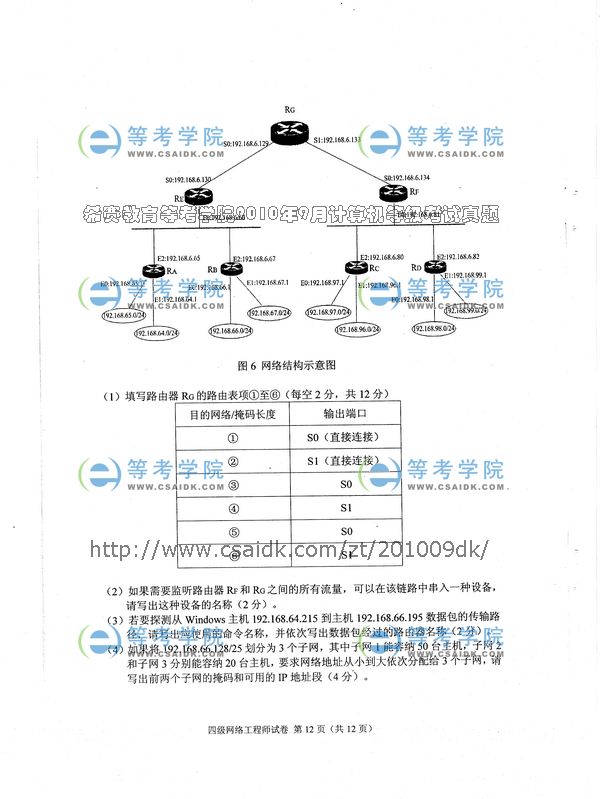 2010年9月计算机等级考试四级笔试试卷_网络工程师