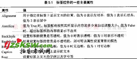 在Windows应用程序的各种对话框中,都显示有一些文本提示信息,在VB中可以使用标签控件来实现在窗体中显示这些文本提示信息。表5.1中列出了标签控件的一些主要属性。