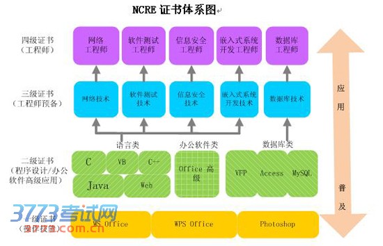 四级:工程师级。四级证书面向已持有三级相关证书的考生,考核计算机专业课程,是面向应用、面向职业的工程师岗位证书。