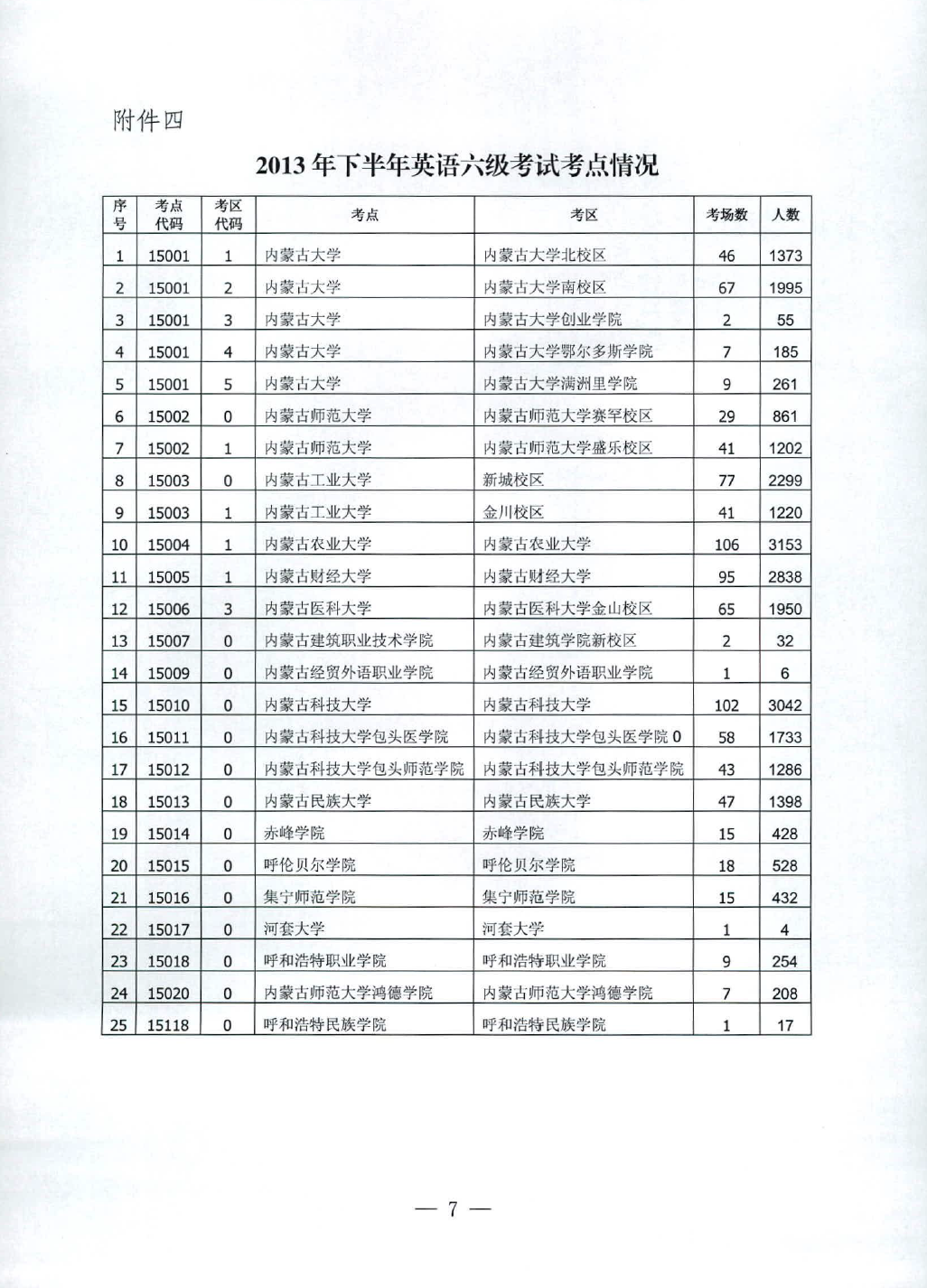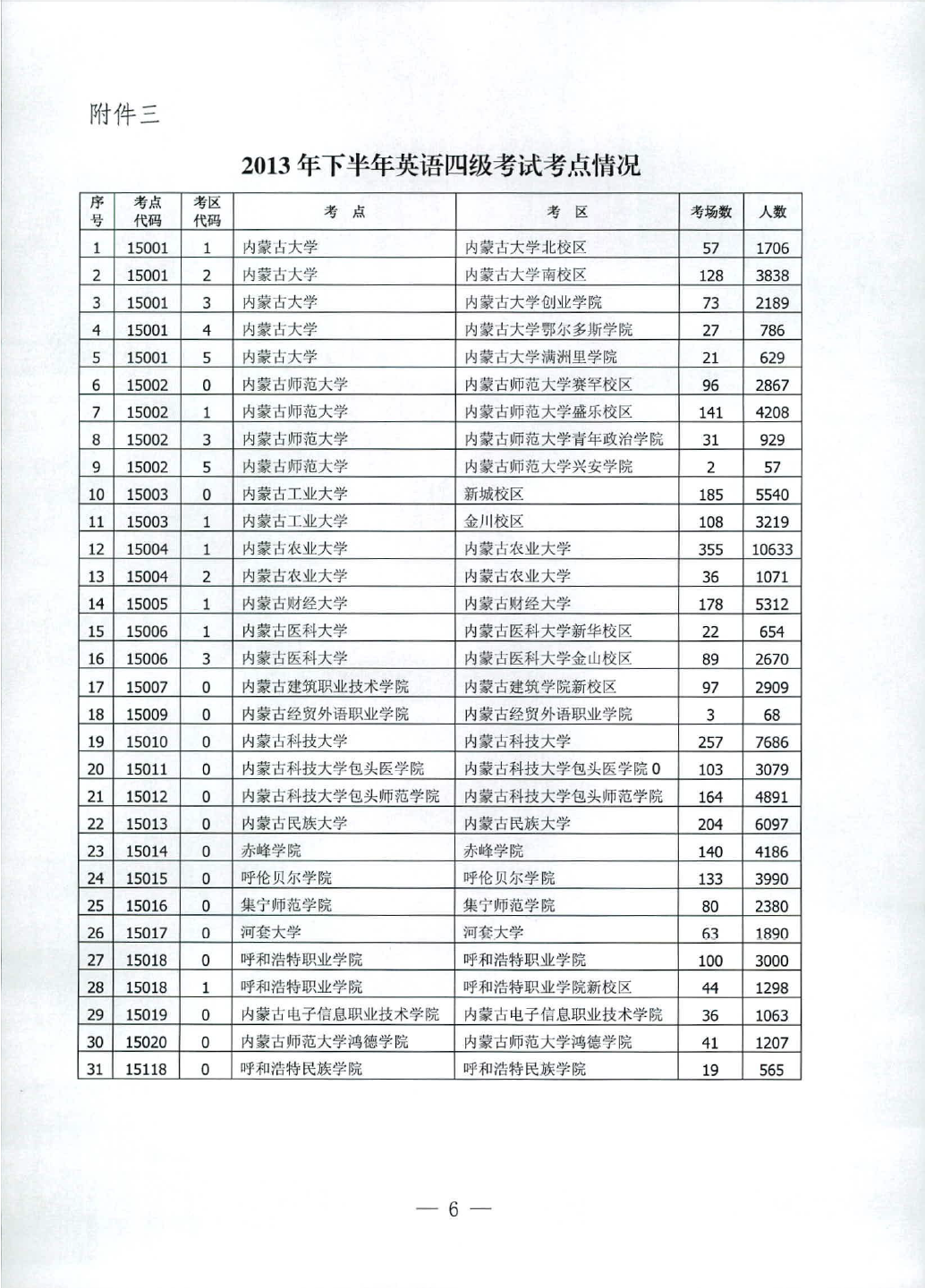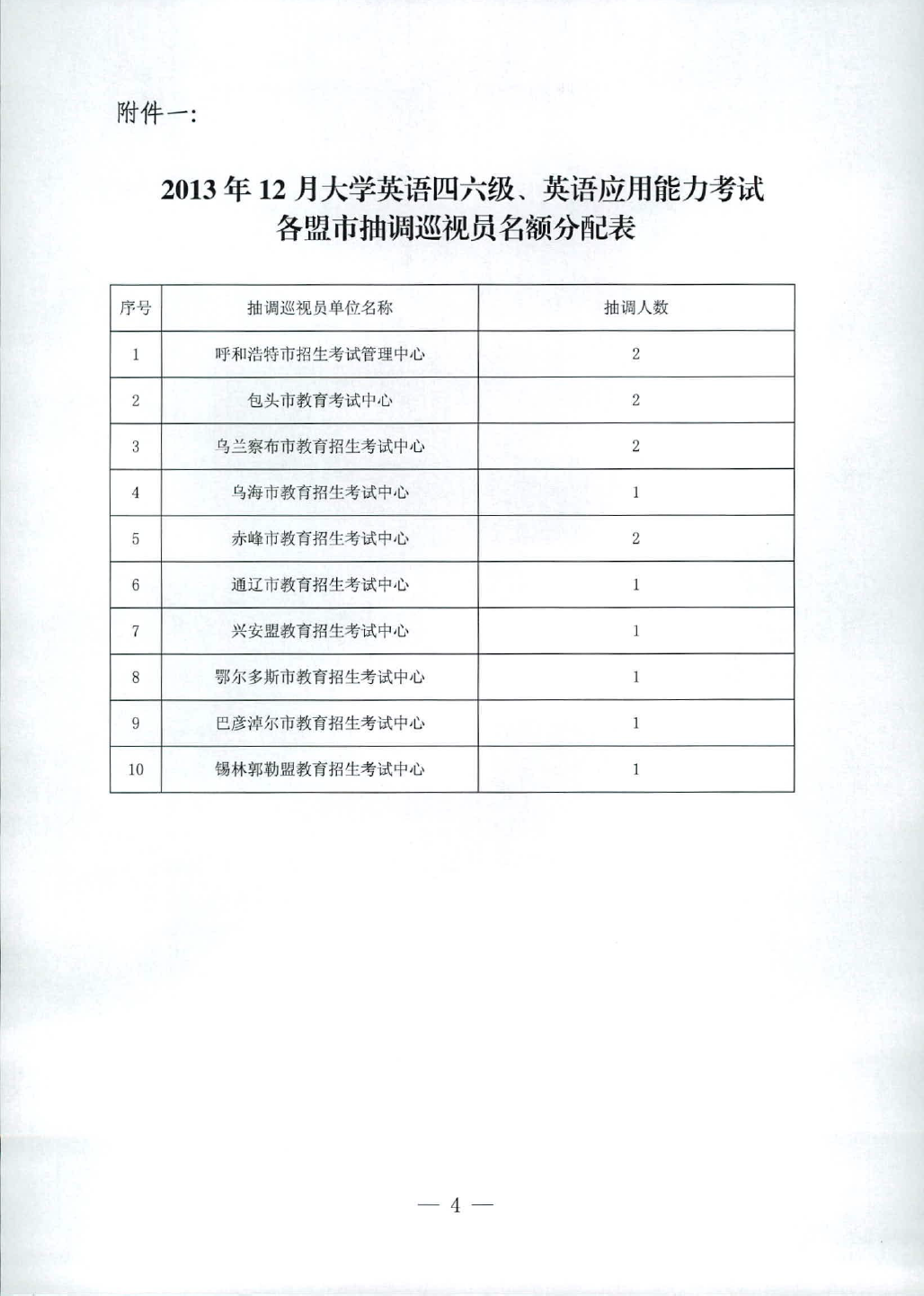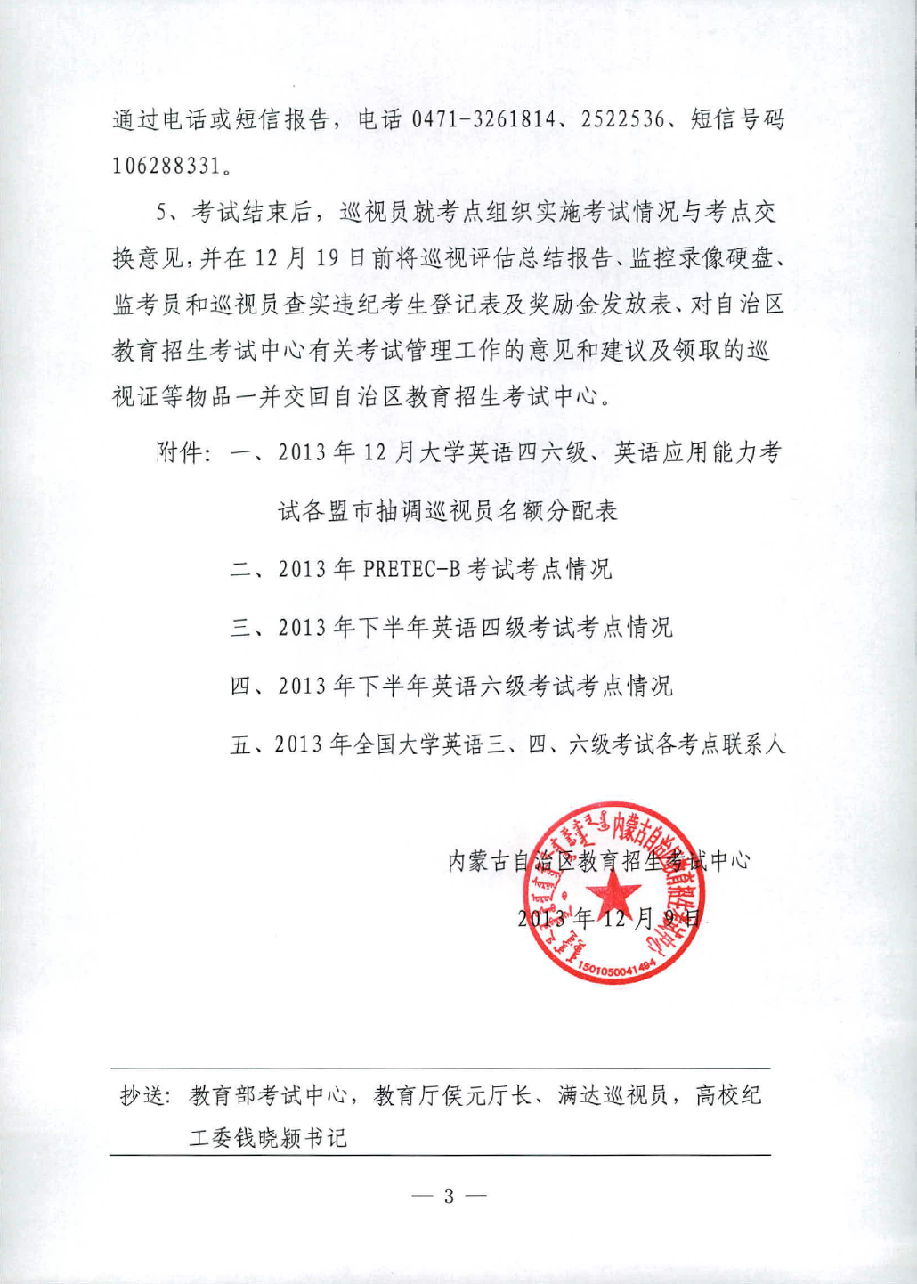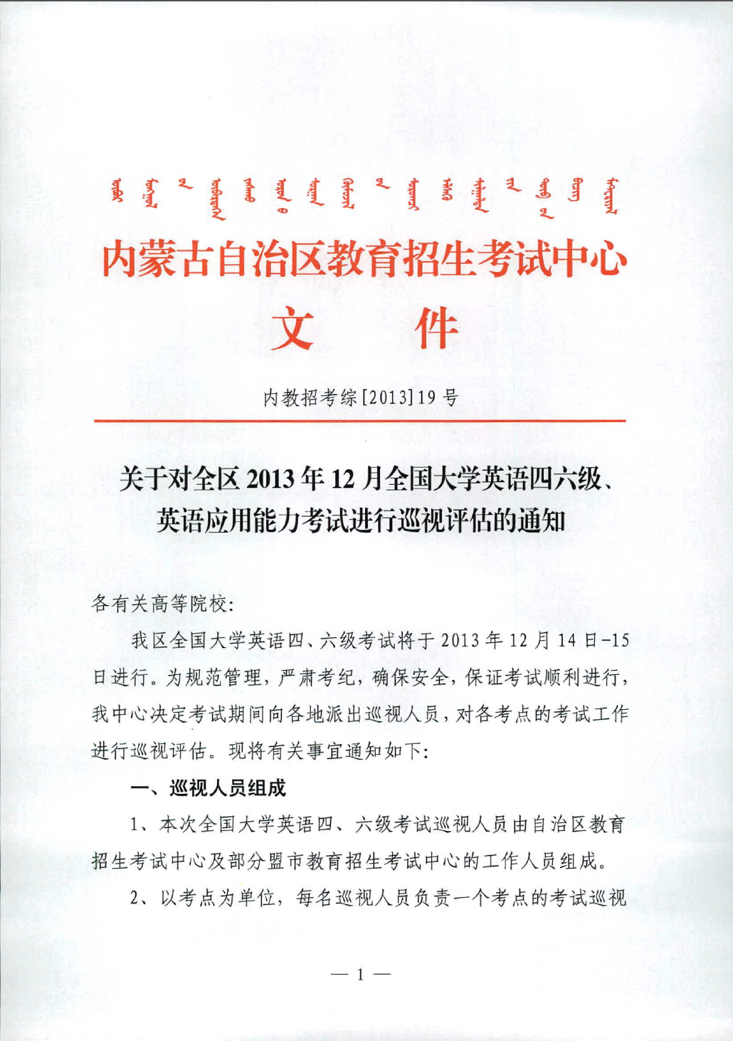 2013年12月内蒙古四六级英语应用能力考试巡视评估
