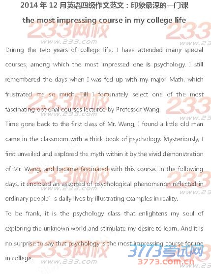 2014年12月大学英语四级作文范文1(233版)
