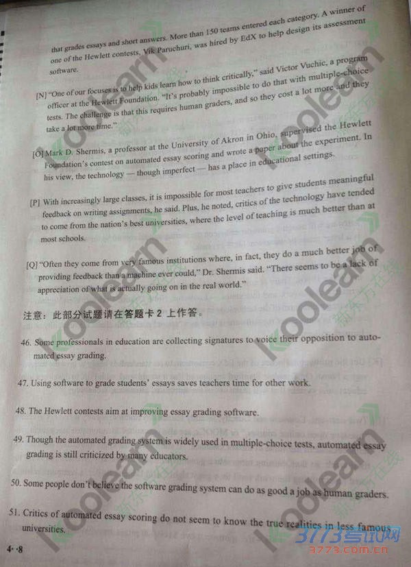 2015年12月19日英语四级考试真题!