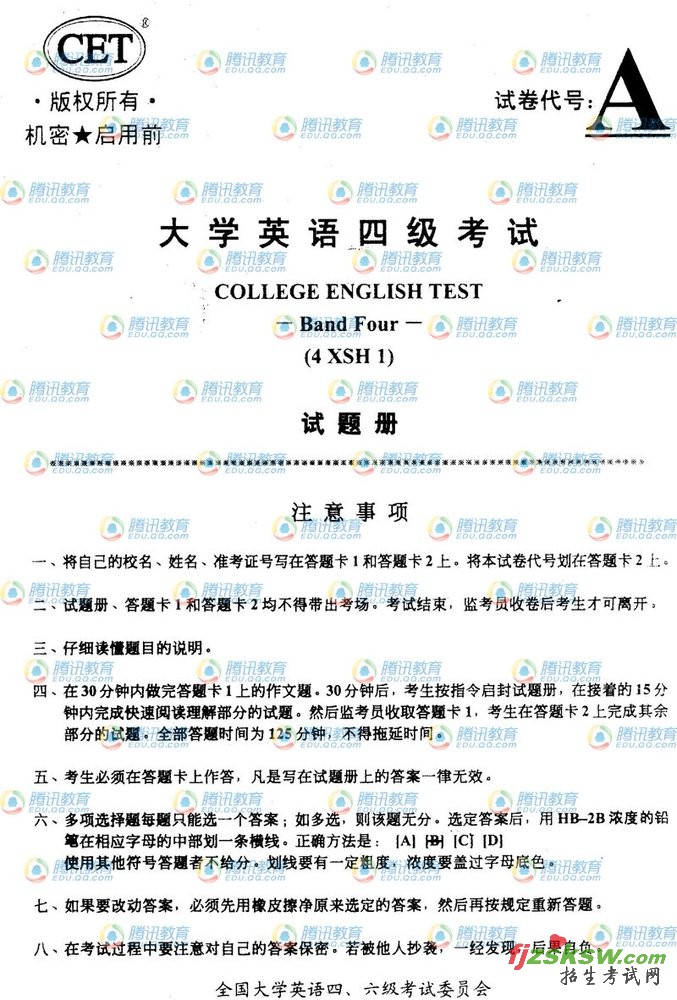 2009年12月大学英语四级试题真题A卷及答案