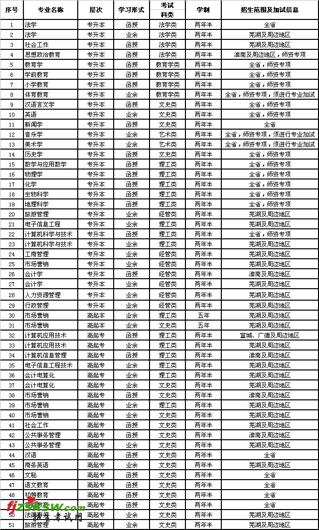 为方便学员学习,我校已在亳州、蒙城、临泉、利辛、淮南、合肥、宣城、广德等地建立了函授站(点),现委托以下函授站点在当地开展2010年招生宣传和生源组织工作,如录取考生达到一定人数,我校将在当地开班上课。(详见下表)。